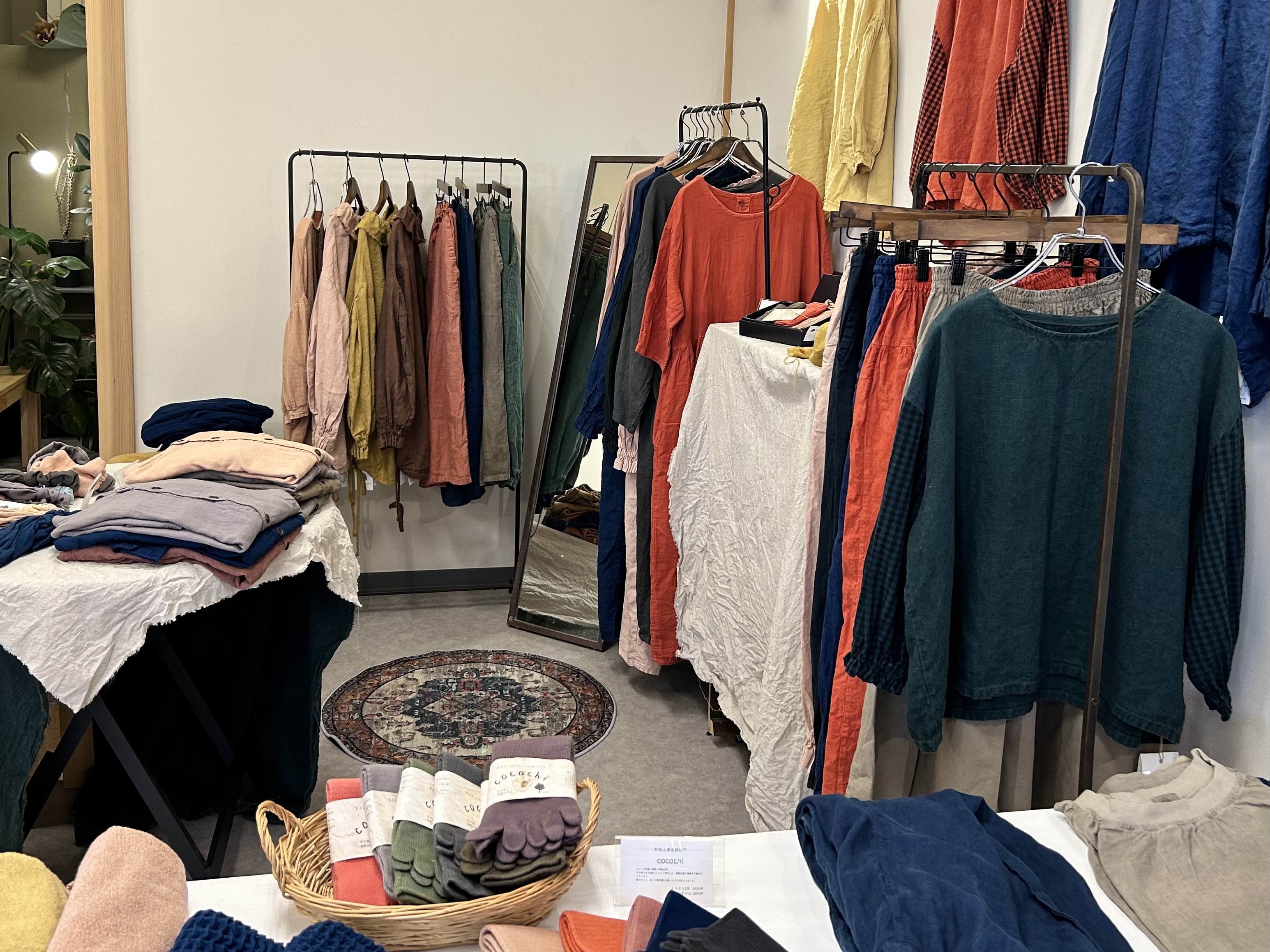 黄色やピンクなどの春らし色をメイン、柔らかい生地と草木染め独特の風合いあるお洋服がたくさん並び、とても見応えのある内容でした。
